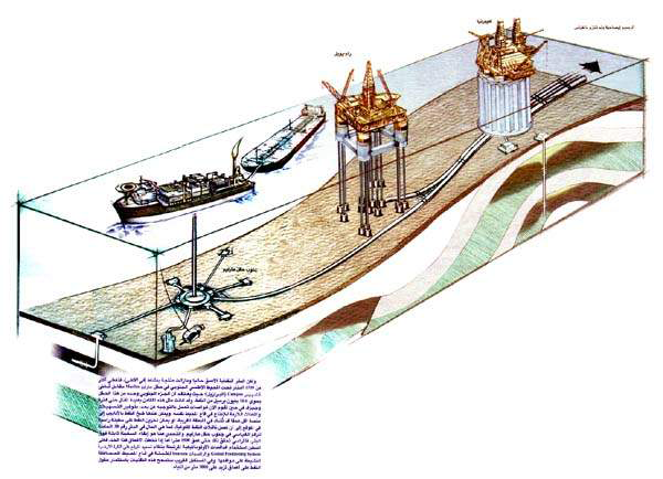 تم حديثاً تطوير ثلاث طرق جديدة لاستثمار حقول النفط الواقعة في الأعماق تحت المياه: فحقل هيبرنيا Hibernia ، الذي بدأ في الشهر11/1997 بإنتاج النفط من تحت مياه البحر التي يبلغ عمقها 80 متراً وذلك مقابل شاطئ نيوفاوندلاند بكندا (في يسار الصورة)، استغرق إنجازه سبعة أعوام بتكلفة زادت على 4 بلايين دولار، بعد أن تم تصميم قاعدته المكونة من 450000 طن من الخرسانة المسلحة لتقاوم التصادم مع جبل جليدي من فئة المليون طن. ومن المتوقع أن ينتج حقل هيبرنيا 615 مليون برميل من النفط على مدى 18 عاما بتطبيق تقانة حقن الماء والغاز. وسيتم تخزين ما قيمته 1.3 مليون برميل من النفط في الخزانات الموجودة في القاعدة، قبل أن يتم نقلها إلى الشاطئ عبر ناقلات النفط المكوكية، مع أن معظم منصات المياه العميقة تقوم بإرسال النفط إلى الشواطئ عبر أنابيب النفط تحت البحرية.