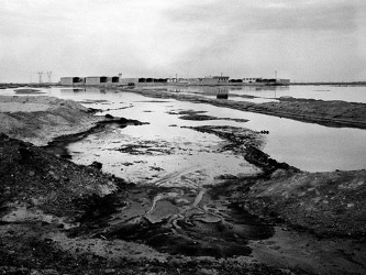 أما منصة رام-پويل Ram-powell (في وسط الصورة)، التي أنشأتها شركات: شل للنفط وأموكو Amoco وإكسون Exxon، فبدأت بالإنتاج في خليج المكسيك في الشهر9/1999، وتتألف من سطيحة ذات 46 طابقا، ترتكز على أعمدة، وزن كل منها 270 طناً، مثبتة في قاع المحيط على عمق 980 متراً. وهي مزودة باثني عشر وترا tendons بقطر 71 سم، تعطيها مقاومة كافية لتتحمل أمواجا بارتفاع 22 مترا ورياحا عاصفة بسرعة 225 كم في الساعة. وتستطيع هذه المنشأة، التي كلفت بليون دولار، حفر الآبار النفطية لأعماق تصل إلى 6000 متر في قاع البحر للحصول على 125 مليون برميل من النفط القابل للاستثمار، وهو الاحتياطي المتوقع لهذا الحقل؛ وسينقلها أنبوب بقطر 30 سم إلى منصات مياه ضحلة موجودة على بعد 40 كم. تعد منصة رام پويل الثالثة من فئة المنصات مجهدة الساق tension leg، التي أنجزتها شركة شل في السنوات الثلاث الماضية. وفي السنة القادمة ستقوم شل بإنشاء منصة أكبر بكثير باسم: أورسا Ursa للبدء بضخ كميات من النفط، تزيد بمرتين ونصف المرة، عما تنتجه منصة رام پويل، وفي مياه يزيد عمقها على 1226 مترا